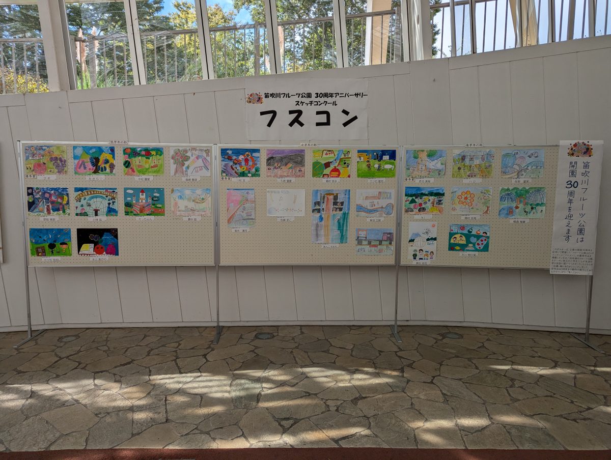 フスコン(フルーツ公園スケッチコンクール)の作品をくだもの広場下段入口付近に展示しました!